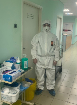 «Обучение очень помогло, благодаря нашему главному врачу Владимиру Волчкову, у которого был непосредственный опыт создания инфекционных палат во время прошлых эпидемий гриппа», — сказал Пуздряк. — Однако здесь есть чему поучиться и к чему привыкнуть. Например, тому как работать в костюме, похожем на скафандр, в течение многих часов без еды, воды и возможности сходить в туалет. Или как пользоваться фонендоскопом-стетоскопом, который усиливает звук, не касаясь вашего лица. Или как найти вены, когда вы носите толстые очки, которые запотевают от вашего дыхания».