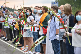 В воскресенье десятки тысяч литовцев взялись за руки в знак солидарности с народом соседней Беларуси, который проводит массовые акции протеста против авторитарного лидера Александра Лукашенко.