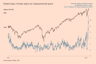 Свидетельством такой жадности Макдональд и аналитики Saxo Bank называют то, что инвесторы, в том числе множество частных, заигрались с опционами «колл» на акции техногигантов. Надеясь на продолжение роста, инвестор приобретает за премию такой инструмент, который даст ему право купить акцию по фиксированной цене (цене исполнения) до истечения срока контракта и заработать столько, на сколько реальная цена акции превысит цену исполнения и уплаченную премию. Продавцы опционов (обычно это маркет-мейкеры) также приобретают акции, чтобы иметь запас для исполнения контрактов, – и это дополнительно стимулирует рост котировок, но при падении цены могут начать сбрасывать их, усиливая падение, поясняют в Saxo Bank.