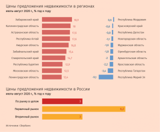 Рынок недвижимости, вопреки ожиданиям, от пандемии только выиграл и вместо снижения активно растет, если не перегрет. К таким выводам пришли аналитики Сбербанка. Их исследование основано, в том числе, на данных объявлений в сервисе Сбербанка «Домклик» в июле-августе – эти месяцы выбраны потому, что большинство ограничений были сняты, и рынок вернулся в нормальное состояние (большинство сделок, не заключенных из-за изоляции, по оценкам Сбербанка, совершены в начале лета).