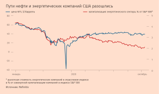 Компании энергетического сектора в этом году показали худшую динамику на фондовом рынке США. Совокупная рыночная капитализация компаний из индекса S&P 500, входящих в отраслевой индекс энергетического сектора, с начала года снизилась почти вдвое – до $598 млрд. Стоимость двух крупнейших нефтегазовых компаний страны, ExxonMobil и Chevron, упала с начала года примерно на 50% и 38% соответственно.
