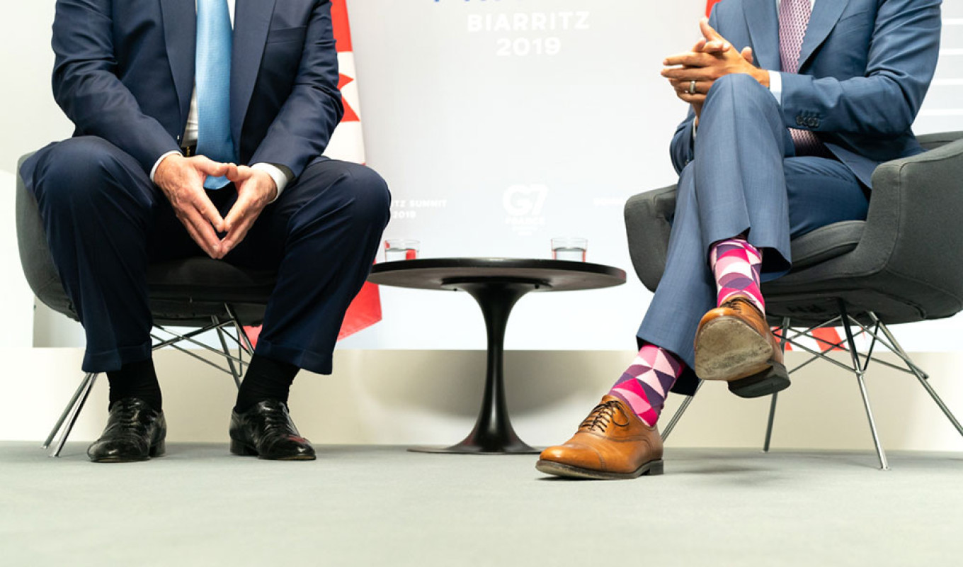 Мужчины тоже не чужие на этом празднике, хотя у женщин, конечно, намного больше возможностей просто в силу бОльшего разнообразия гардероба. Тем не менее есть яркие примеры, как с образом работают мужчины-политики. В 1961 г. Джон Кеннеди первым из американских президентов появился на инаугурационной речи без шляпы, сигнализируя о том, что во главе государства теперь представитель нового, более свободного и менее скованного формальностями поколения. Герои современности – носки Джастина Трюдо, рисунок которых часто связан с темой мероприятия: кленовые листья – на встрече глав правительств провинций Канады или флаг НАТО – на саммите организации в Брюсселе.