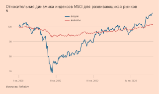Прорыв в разработке вакцины против COVID-19 добавил оптимизма относительно перспектив мировой экономики и возродил интерес к более рисковым инвестициям. От этого выиграли валюты и акции развивающихся стран, которые бурно растут в последние две недели, потери компенсировали и облигации. Ноябрьское ралли вывело фондовый индекс MSCI Emerging Markets в положительную зону за период с начала года, с мартовского минимума он вырос более чем на 50%.