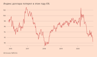 Уже три недели доллар движется вниз, одновременно подталкивая другие валюты к многолетним максимумам, поскольку инвесторы ожидают, что вакцины помогут быстрому восстановлению мировой экономики в следующем году. За последнюю неделю доллар потерял 1,2% по отношению к корзине валют развитых стран, в результате чего его падение с начала года превысило 6%.