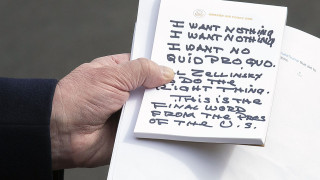 Вот его заметки для выступления перед СМИ о слушаниях по делу об импичменте в ноябре 2019 г. Трампа обвиняли в том, что он требовал от президента Украины Владимира Зеленского (фамилия которого в заметках написана с двумя ошибками) расследовать деятельность сына Джо Байдена, а чтобы оказать давление, приостановил перечисление одобренной Конгрессом помощи Украине. В заметках и в отпоре, который Трамп дает критикам, все просто. Написано крупными буквами («весомо, грубо, зримо» Маяковского сюда хорошо подходит со смысловой и визуальной, хотя и не с художественной точки зрения). Простыми словами. И так же сказано: во время выступления президент много раз повторил дважды написанную фразу «Я ничего не хочу».