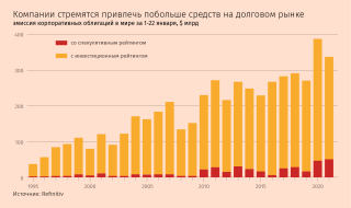 Программы денежного стимулирования центробанков и удержание ими ставок на исторически низких уровнях также побуждают компании привлекать как можно больше дешевого долгового финансирования. Так многие из них пополняют балансы и пытаются пережить трудный период сворачивания бизнеса из-за ограничительных мер. Одновременно инвесторы заняты поиском повышенной доходности, что толкает их даже в самые рискованные секторы рынка облигаций. Выпуск высокодоходных облигаций в мире составил в январе рекордные для этого периода $49,8 млрд.