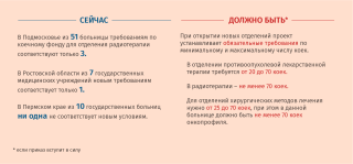 Требования к числу коек могут привести к снижению доступности онкологической помощи для населения: анализ российского коечного фонда для онкологического направления показал, что данным требованиям не удовлетворяют многие областные и федеральные госбольницы, указывается в протоколе рабочей группы по «регуляторной гильотине».