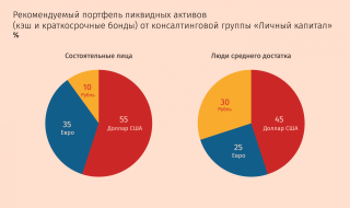 Среднестатистическому представителю среднего класса с рублевым доходом Потапов и другие эксперты рекомендуют распределить активы между рублем, евро и долларом, отдав предпочтение той валюте, в которой планируются основные расходы в будущем.