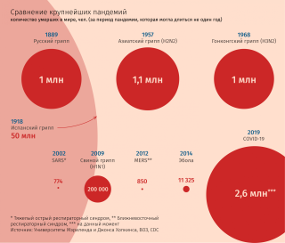 Особенно заразным вариантом этого гриппа была «испанка» — пандемия, охватившая мир в 1918–1920 гг. Историки медицины продолжают спорить о том, как она завершилась. Некоторые считают, что вирус заразил достаточное количество людей, чтобы у человечества сформировался врожденный иммунитет. Другие говорят, что он мутировал и со временем стал менее смертоносным. В любом случае, вспышки испанского гриппа продолжались в разных частях света до 1922 г.