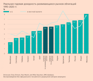 Впрочем, в небольшом числе развивающихся стран, например в Бразилии, облигации принесли бóльший доход, чем акции; однако Россия находится в мировом тренде (см. ниже).