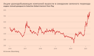 Это должно стимулировать спрос на топливо для АЭС — уран. На этих ожиданиях составляемый Solactive индекс акций добывающих уран компаний взлетел с начала года на 35% и достиг максимального уровня более чем за шесть лет.
