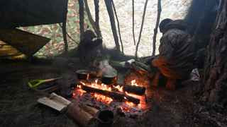 В лесу на окраине Киева инструкторы также провели занятия по разведению костров и выживанию при отрицательных температурах
