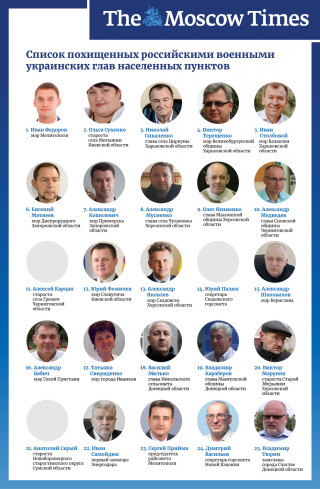 За время войны, по данным украинских властей и местных жителей, российские военные похитили* как минимум 25 украинских мэров и других должностных лиц муниципалитетов. Такую цифру мы получили, изучив сообщения в СМИ и в социальных сетях. Москва данные о задержаниях и похищениях не комментирует.