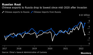 Китайские компании резко сократили объемы поставок товаров в Россию после начала войны и введения санкций, следует из данных таможни КНР, которые приводит Bloomberg.