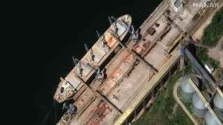 Телеканал CNN опубликовал новые спутниковые снимки Maxar Technologies. На них видно, как два российских сухогруза загружают предположительно украденным украинским зерном в порту Севастополя.