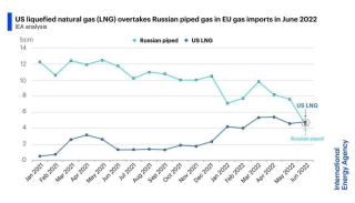 «Недавнее резкое сокращение поставок российского газа в ЕС означает, что [июнь] стал первым месяцем в истории, когда ЕС импортировал больше газа в виде СПГ из США, чем по трубопроводам из России», — написал в Twitter исполнительный директор Международного энергетического агентства Фатих Бироль.
