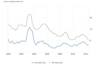 На картинке вы видите инфляцию и ставку ЦБ наблюдавшиеся в Бразилии с 1999 по 2011 год.