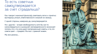 Людям очень важно чувствовать свою нужность – особенно когда в их жизни наступает неопределенность. Но это не повод, чтобы навязывать свои рекомендации друзьям и знакомым, которые тоже попали в сложные обстоятельства. Что делать с непрошеными советами? – об этом в новом выпуске нашего психологического сериала.