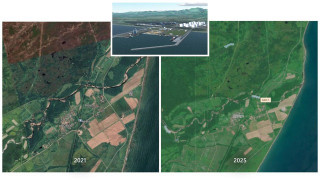 Однако на спутниковых снимках за июль 2025 года выбранное для порта место выглядит так же, как 4 года назад.