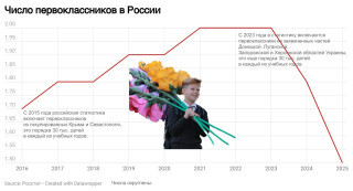 Но с 2023-го года – резкий обвал – Россия потеряла полмиллиона первоклассников, несмотря на все истерические меры правительства по исправлению демографии. И падение, если верить социологам, продолжится.