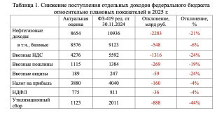 Сборы нефтегазовых налогов недотянули до изначальных расчетов Минфина 2,28 трлн рублей, или 21%. Поступления ввозного НДС оказались меньше плана на 1,316 трнл рублей, или 24%.