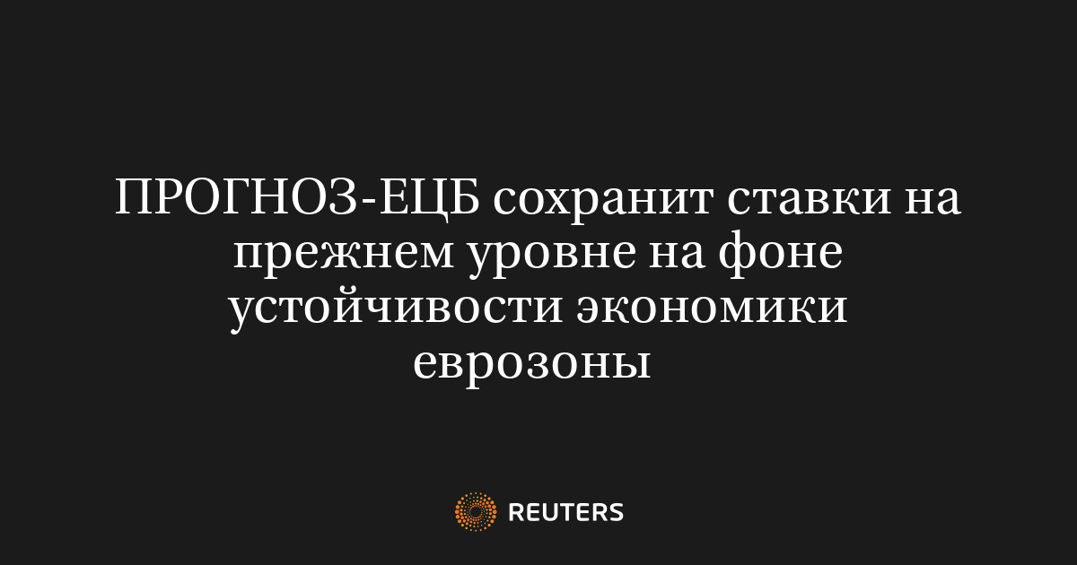 ПРОГНОЗ-ЕЦБ сохранит ставки на прежнем уровне на фоне устойчивости экономики еврозоны