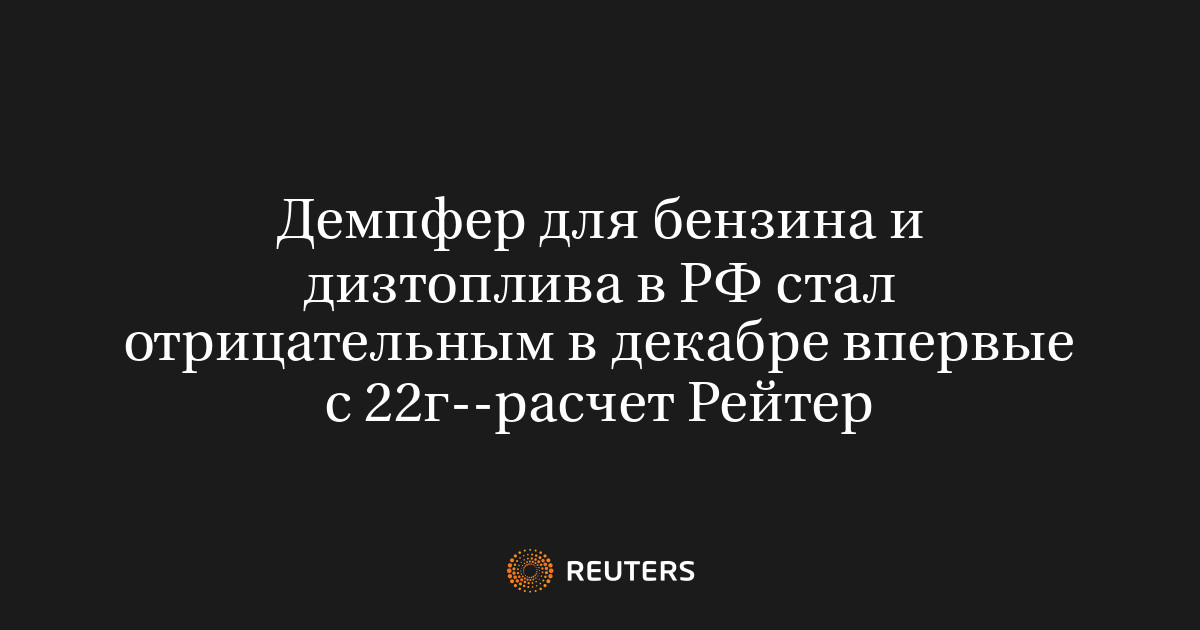 Демпфер для бензина и дизтоплива в РФ стал отрицательным в декабре впервые с 22г--расчет Рейтер