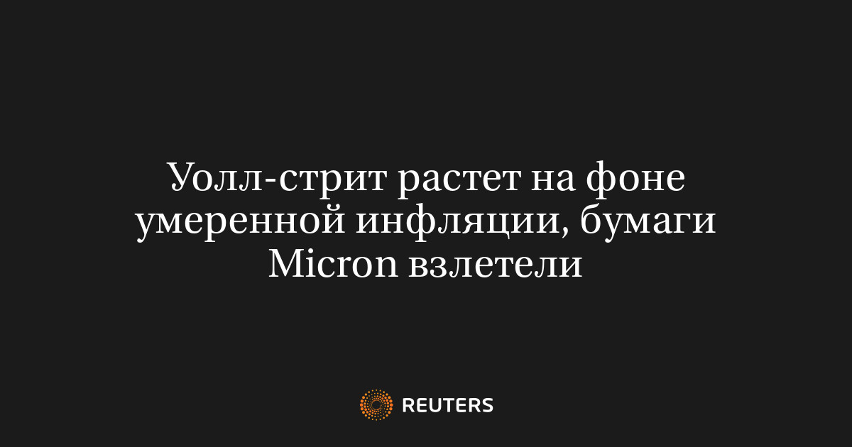 Уолл-стрит растет на фоне умеренной инфляции, бумаги Micron взлетели