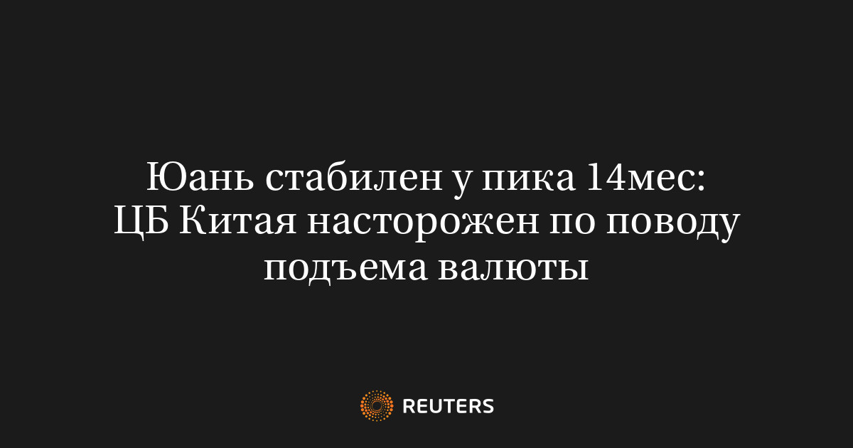 Юань стабилен у пика 14мес: ЦБ Китая насторожен по поводу подъема валюты