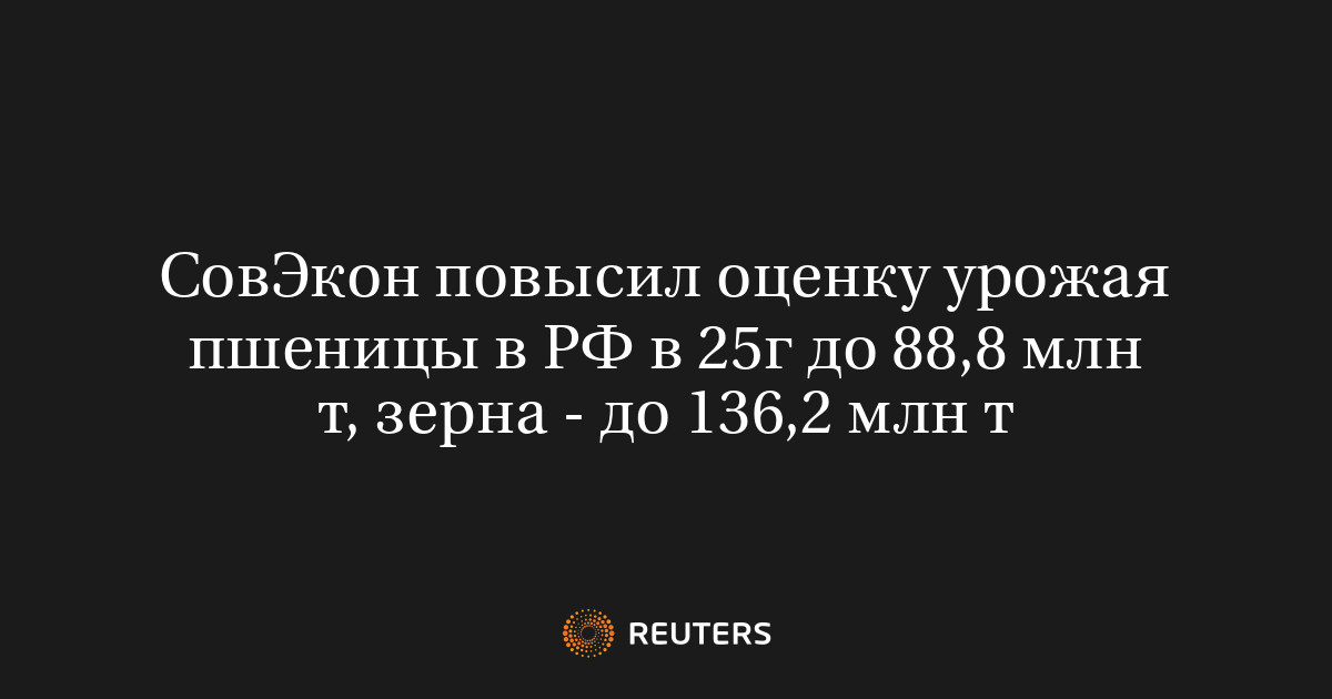 СовЭкон повысил оценку урожая пшеницы в РФ в 25г до 88,8 млн т, зерна - до 136,2 млн т