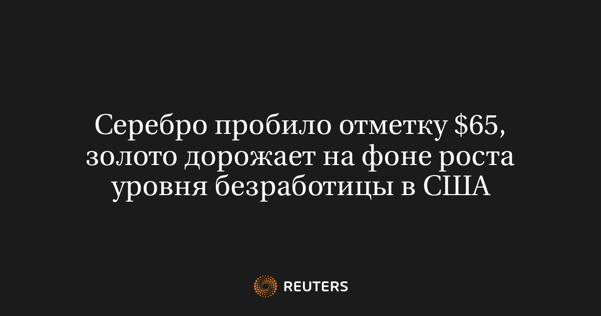 Серебро пробило отметку $65, золото дорожает на фоне роста уровня безработицы в США