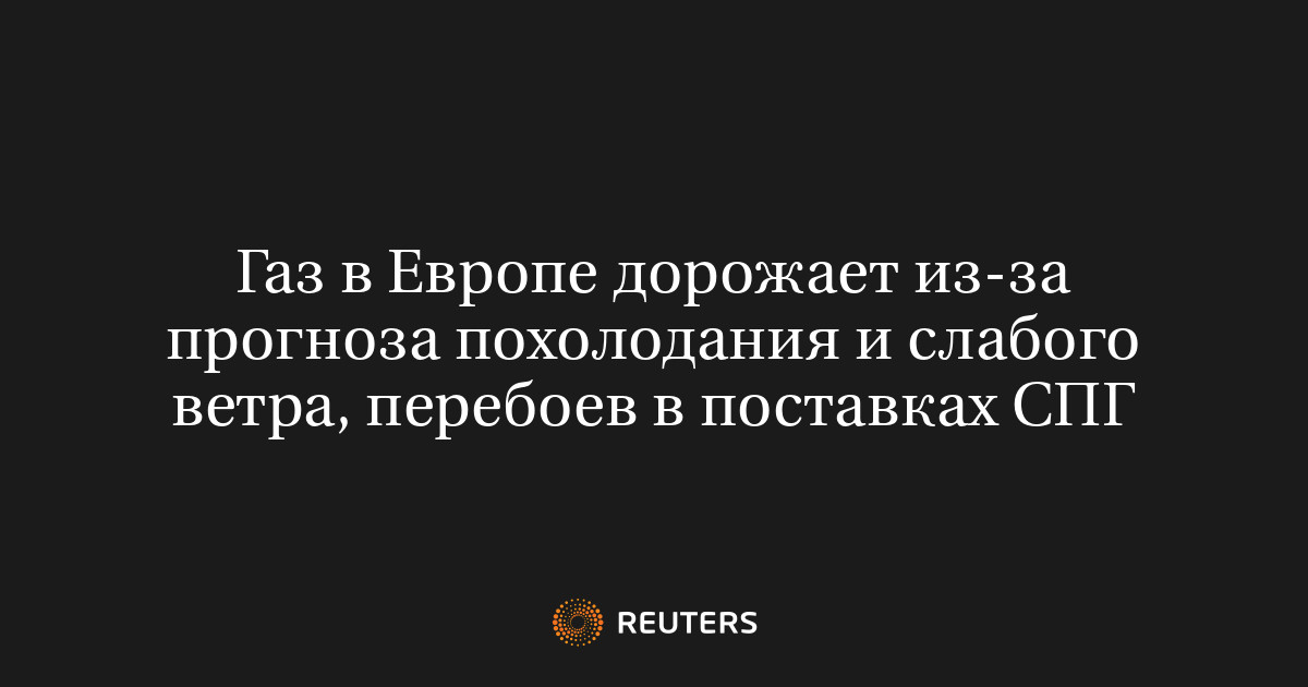 Газ в Европе дорожает из-за прогноза похолодания и слабого ветра, перебоев в поставках СПГ