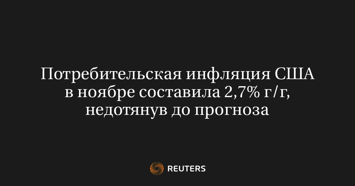 Потребительская инфляция США в ноябре составила 2,7% г/г, недотянув до прогноза