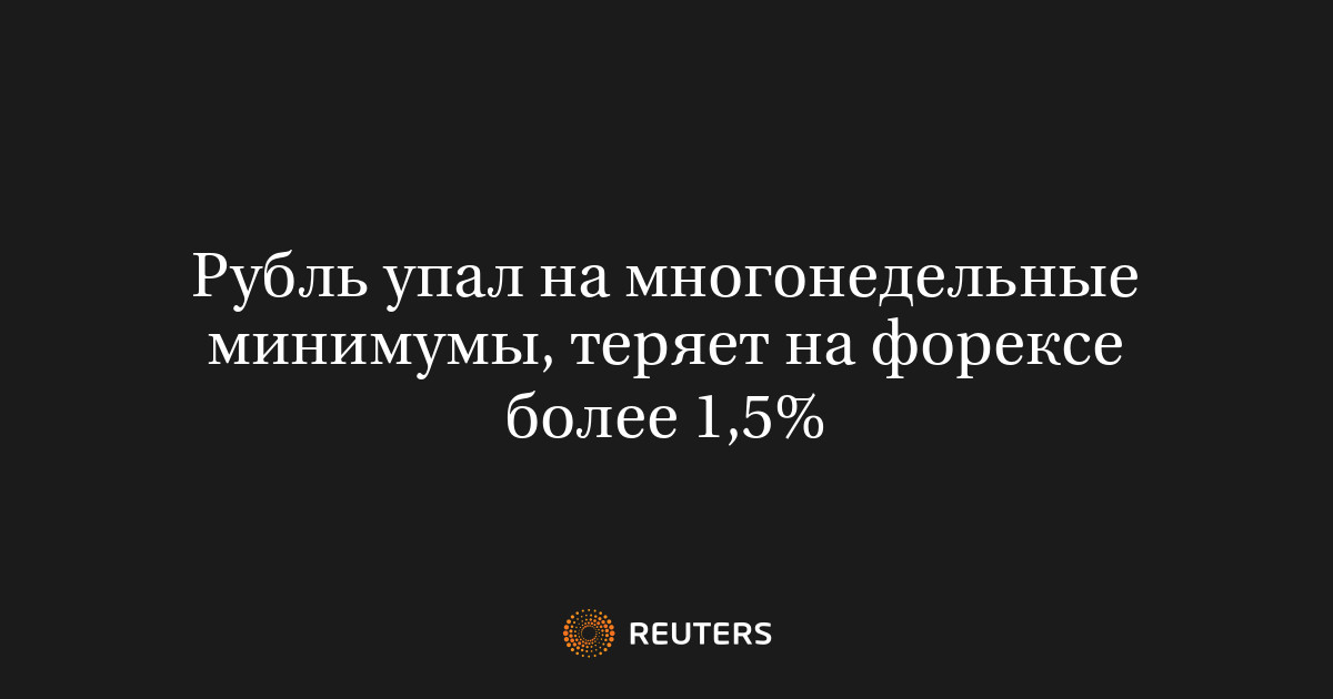 Рубль упал на многонедельные минимумы, теряет на форексе более 1,5%