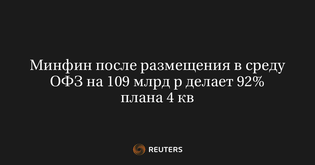 Минфин после размещения в среду ОФЗ на 109 млрд р делает 92% плана 4 кв