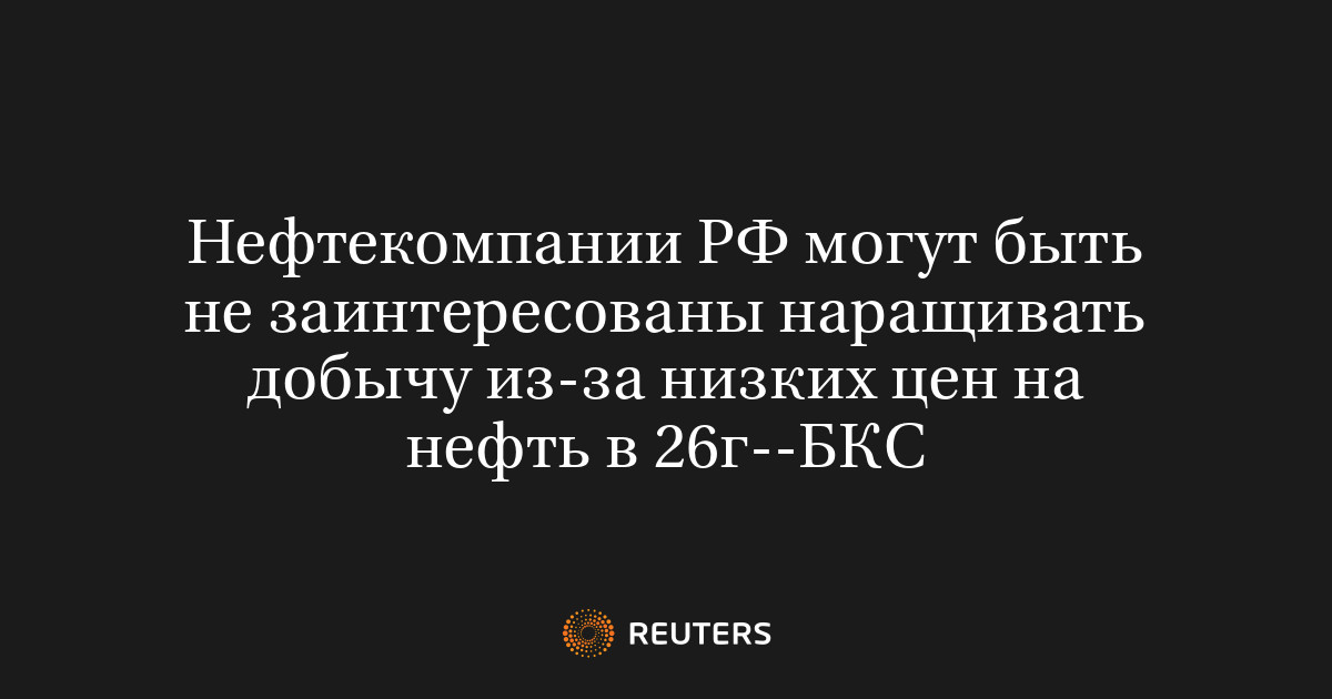 Нефтекомпании РФ могут быть не заинтересованы наращивать добычу из-за низких цен на нефть в 26г--БКС