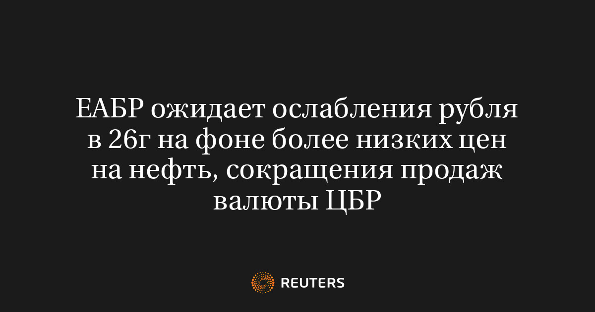 ЕАБР ожидает ослабления рубля в 26г на фоне более низких цен на нефть, сокращения продаж валюты ЦБР