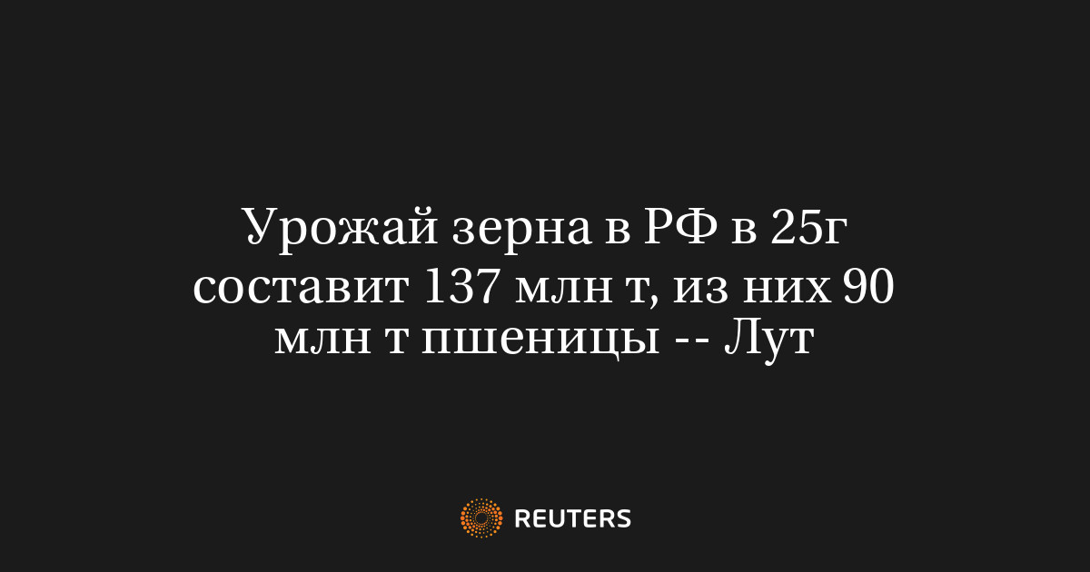 Урожай зерна в РФ в 25г составит 137 млн т, из них 90 млн т пшеницы -- Лут