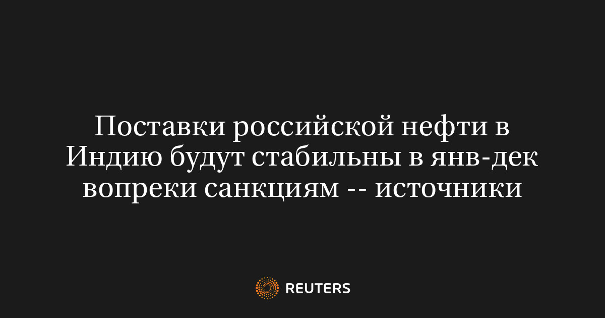 Поставки российской нефти в Индию будут стабильны в янв-дек вопреки санкциям -- источники