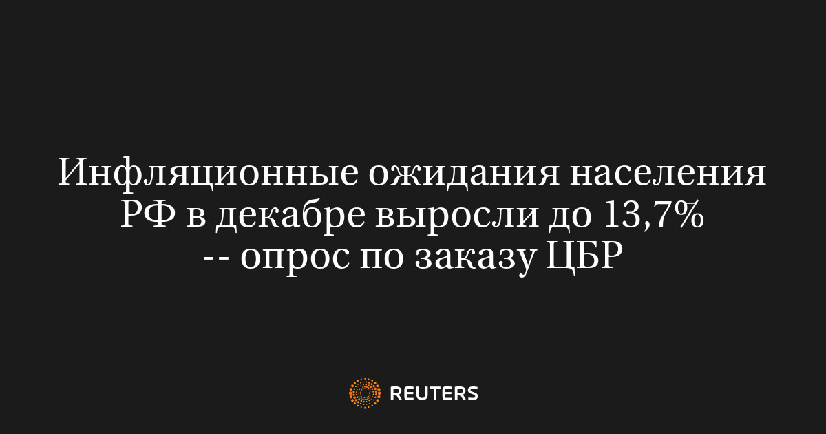 Инфляционные ожидания населения РФ в декабре выросли до 13,7% -- опрос по заказу ЦБР