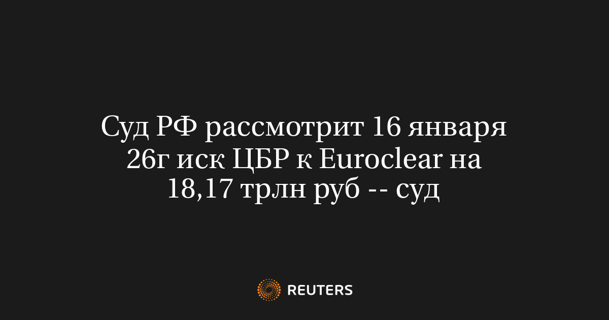 Суд РФ рассмотрит 16 января 26г иск ЦБР к Euroclear на 18,17 трлн руб -- суд