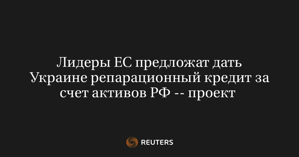 Лидеры ЕС предложат дать Украине репарационный кредит за счет активов РФ -- проект