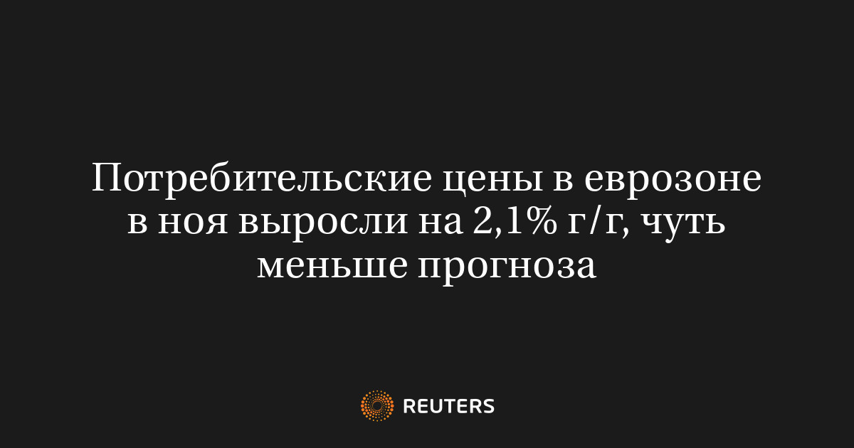 Потребительские цены в еврозоне в ноя выросли на 2,1% г/г, чуть меньше прогноза