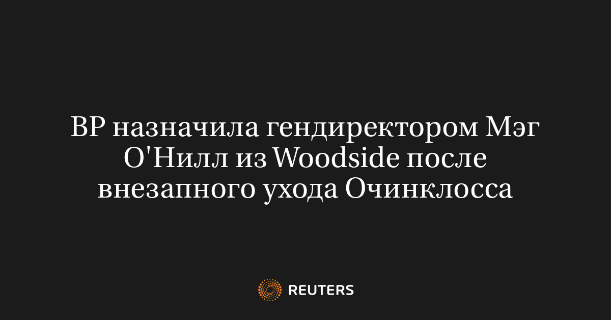 BP назначила гендиректором Мэг О'Нилл из Woodside после внезапного ухода Очинклосса