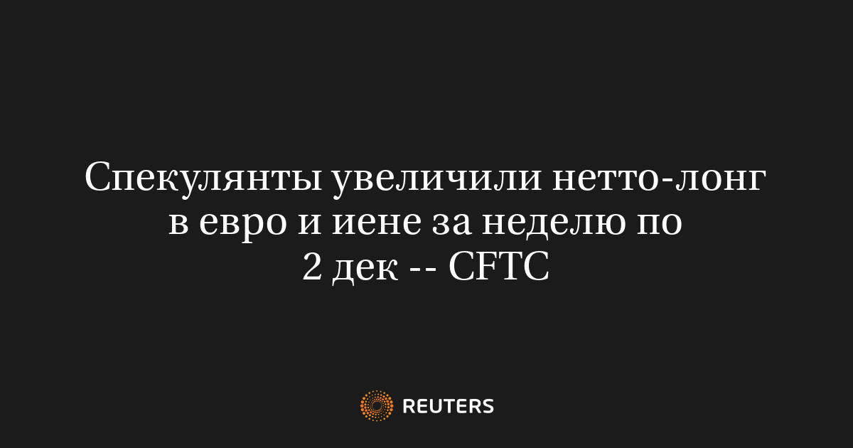 Спекулянты увеличили нетто-лонг в евро и иене за неделю по 2 дек -- CFTC