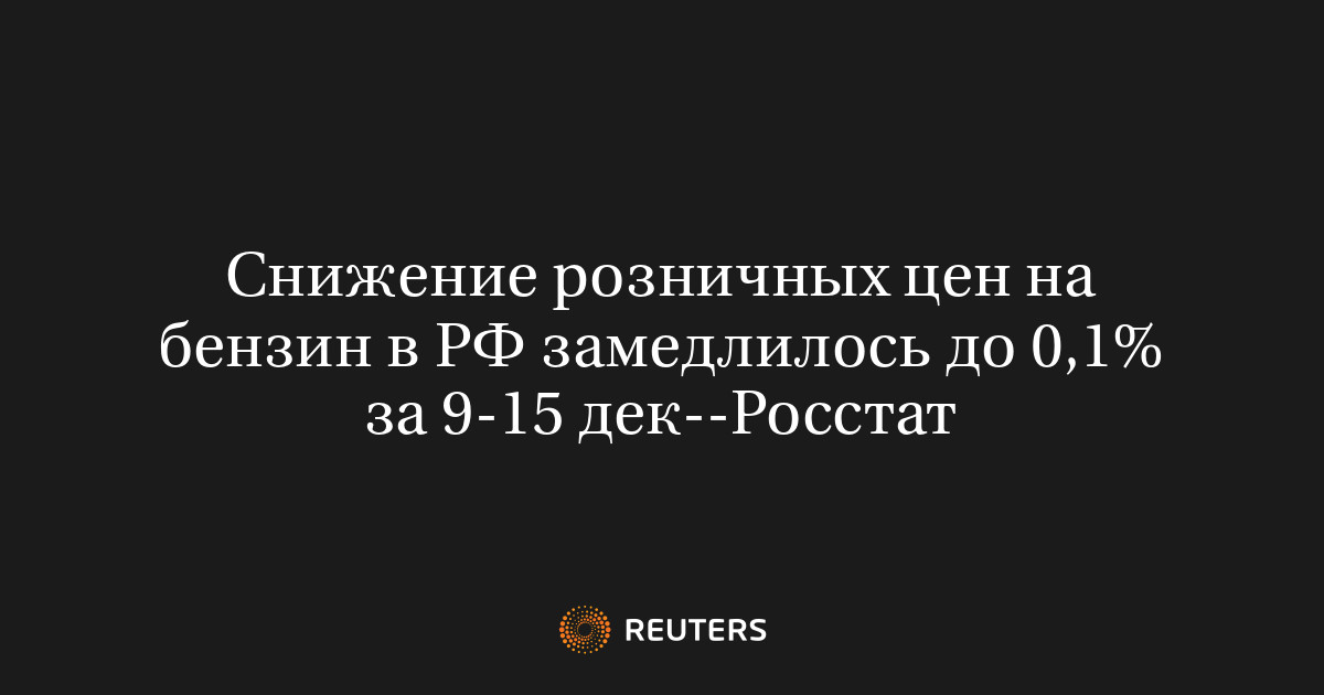 Снижение розничных цен на бензин в РФ замедлилось до 0,1% за 9-15 дек--Росстат