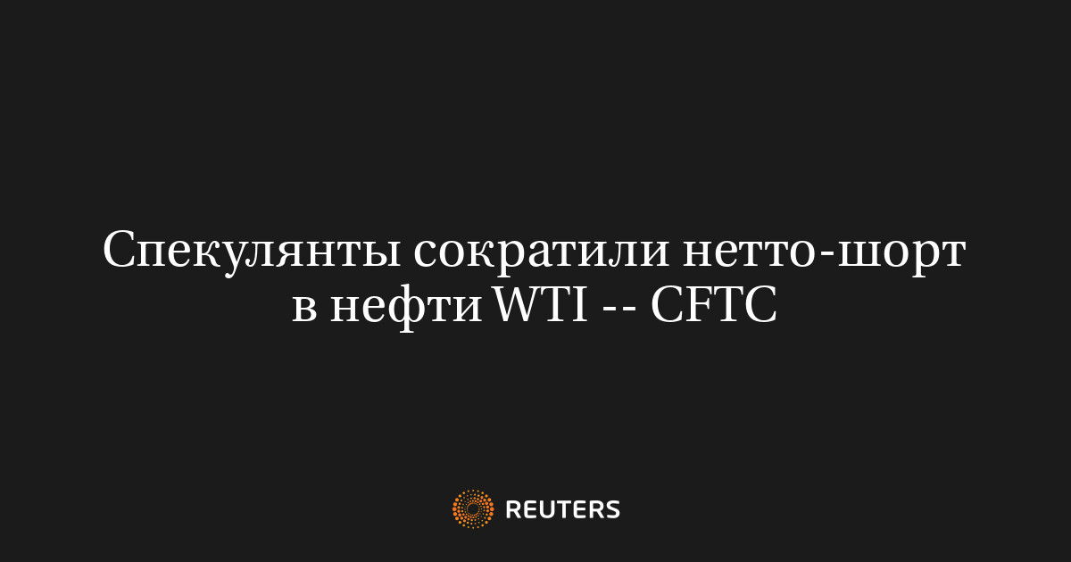 Спекулянты сократили нетто-шорт в нефти WTI -- CFTC