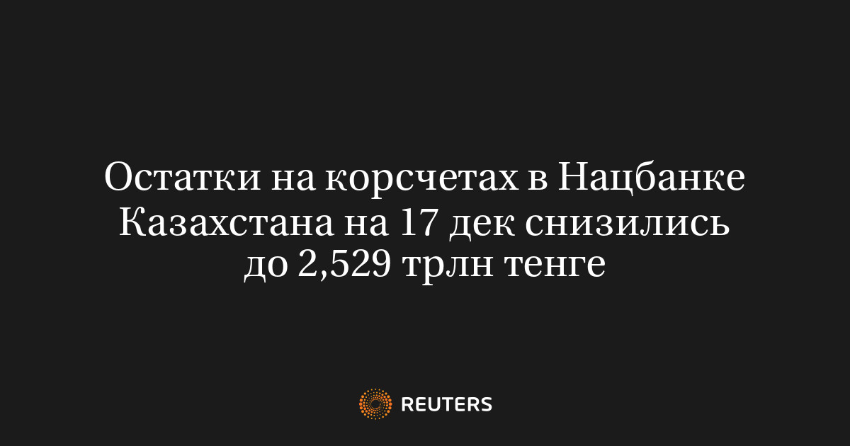 Остатки на корсчетах в Нацбанке Казахстана на 17 дек снизились до 2,529 трлн тенге